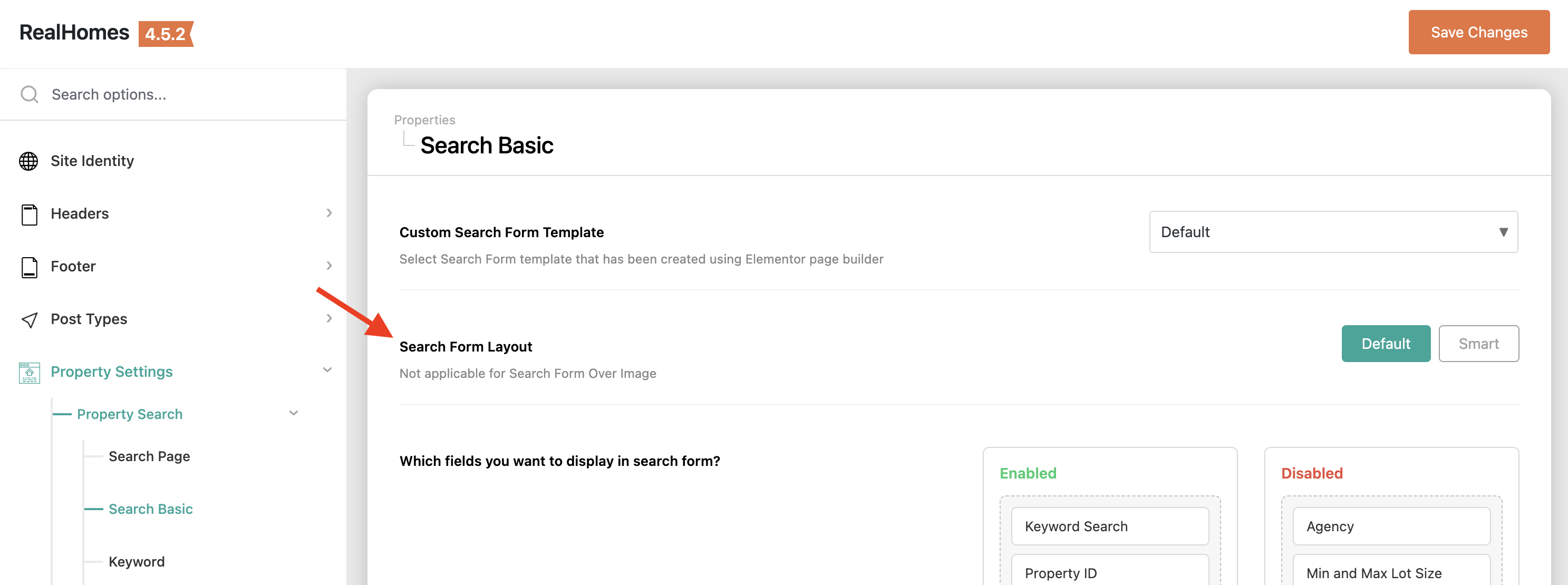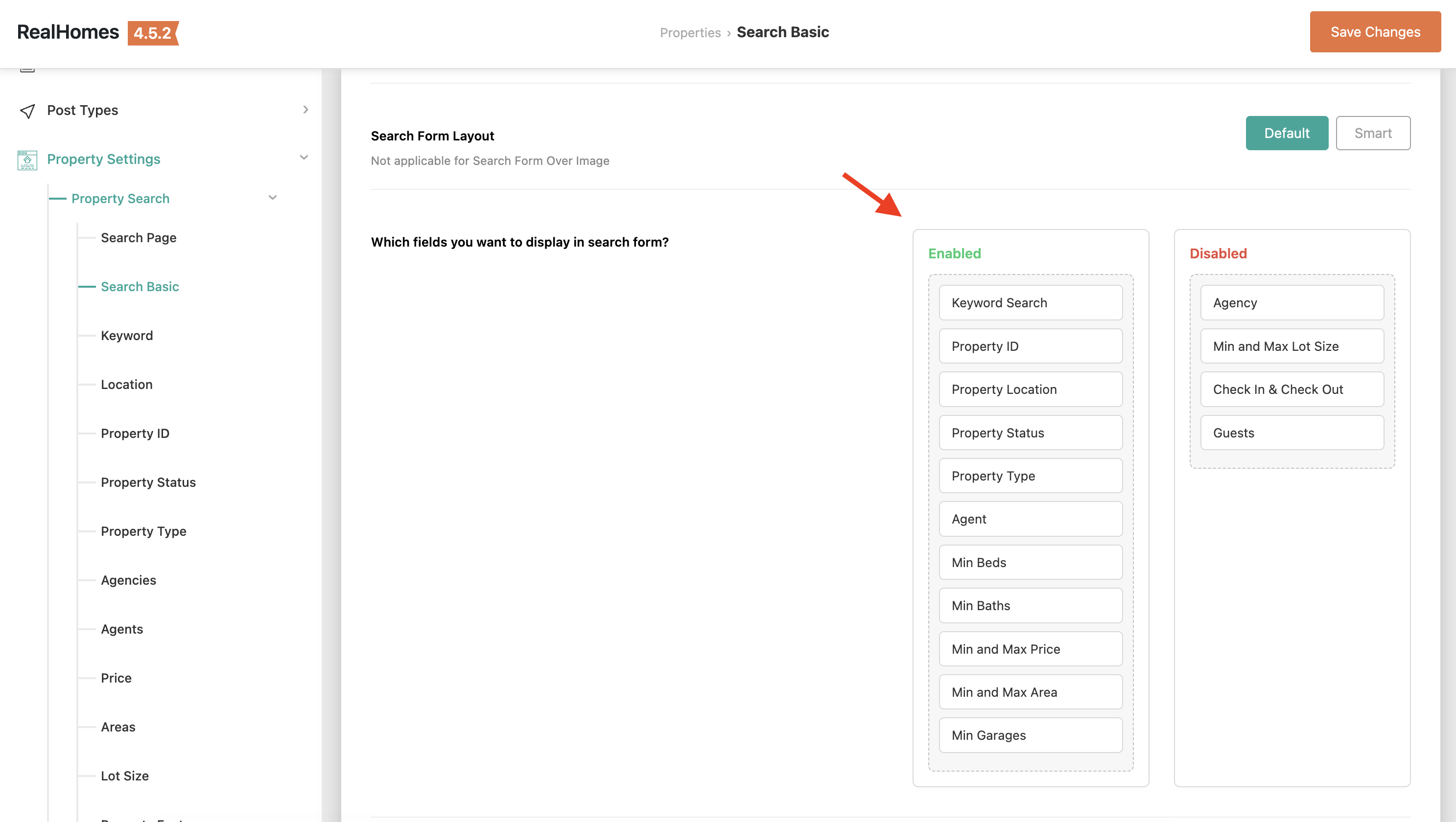 You can also Show / Hide Fields on properties search form as well as Drag and Drop the Fields to change their display order and you can also change the labels.