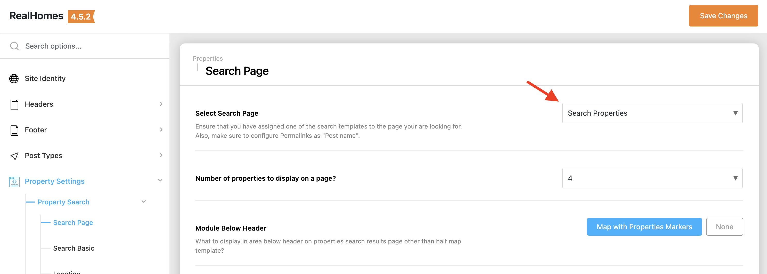 Before starting with this section, Make sure you have pretty permalinks enabled from Dashboard → Settings → Permalinks and Property Search Page is created.