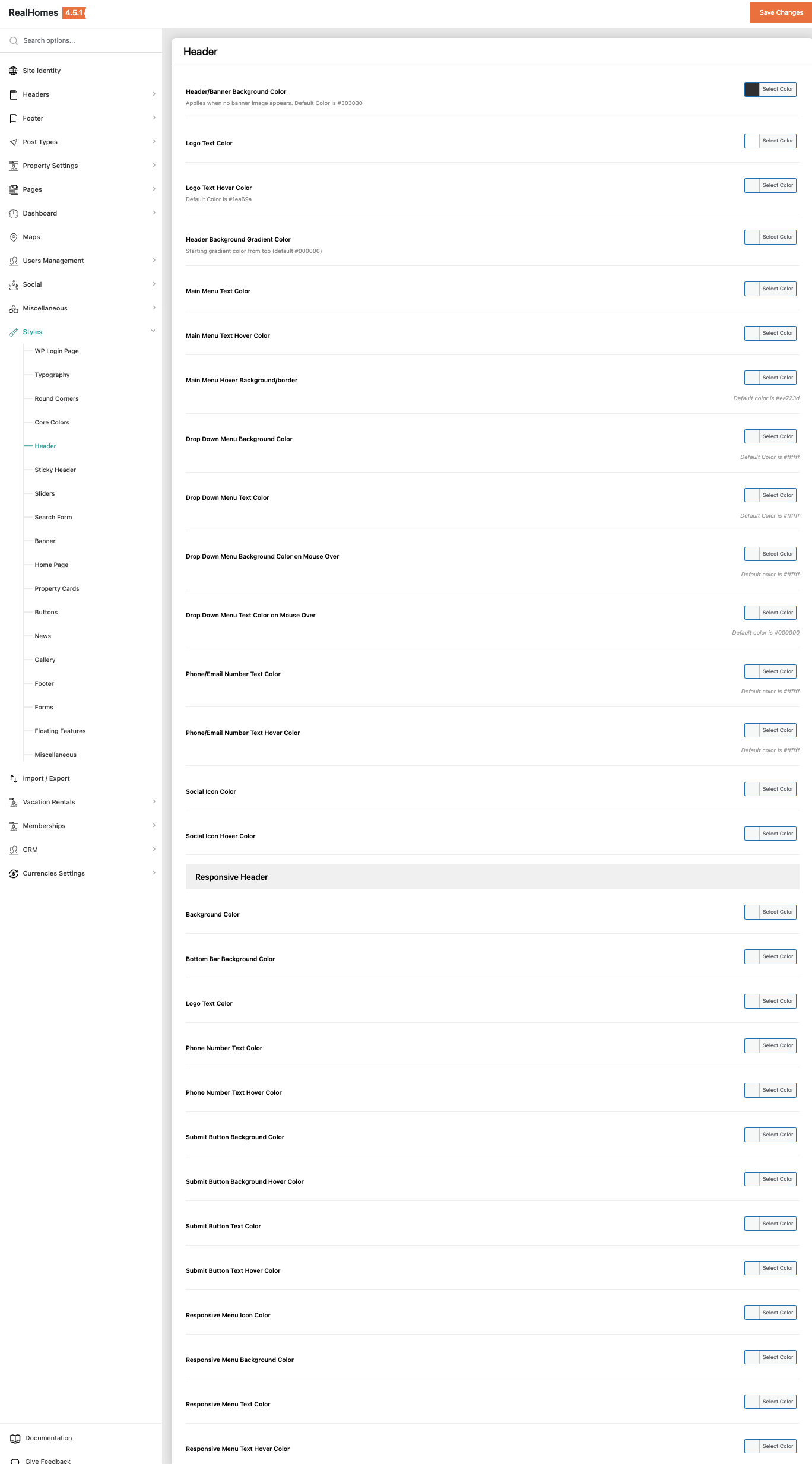You can customize almost all the components of the header from this section.