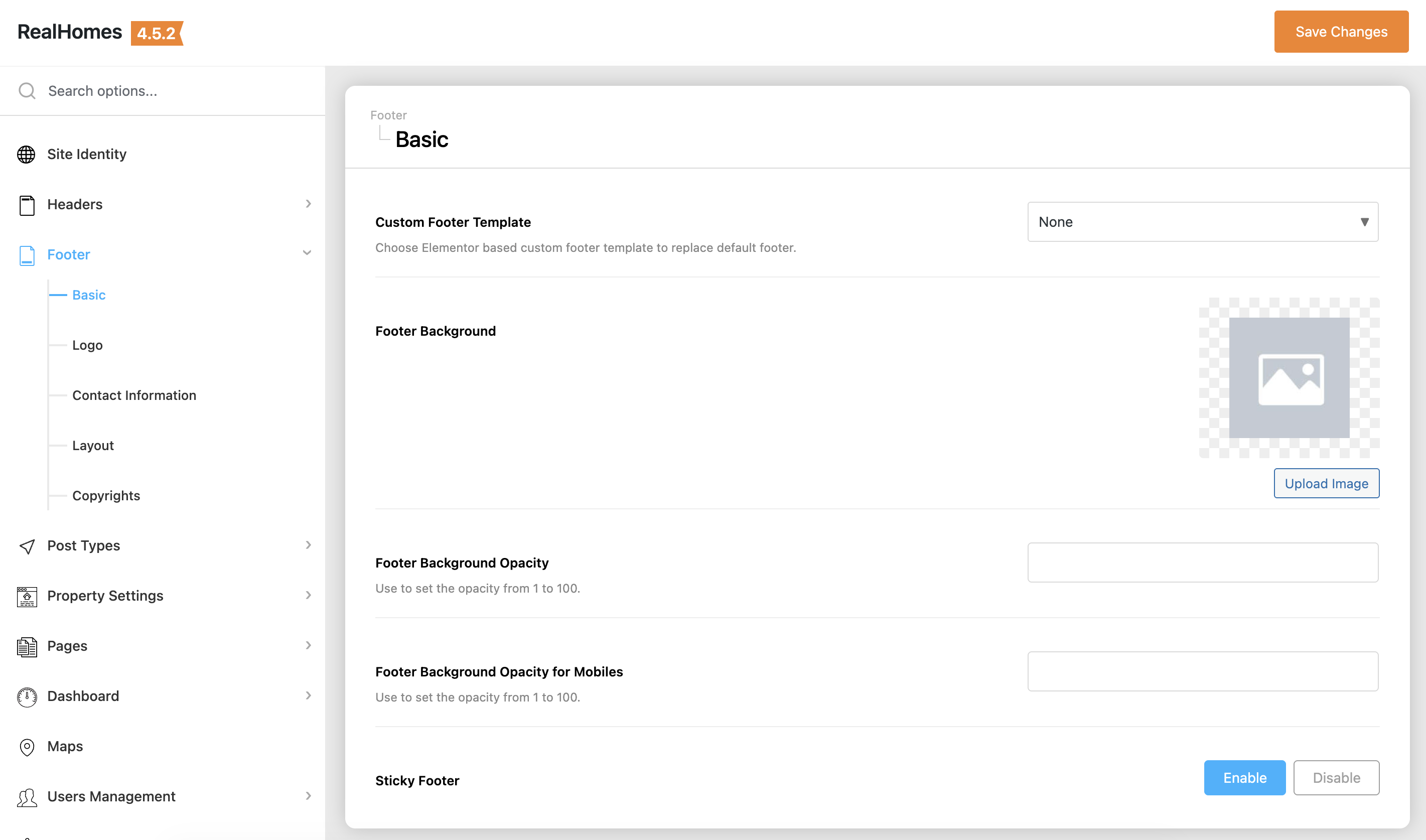 Dashboard ➤ RealHomes ➤ Settings ➤ Footer ➤ Basics