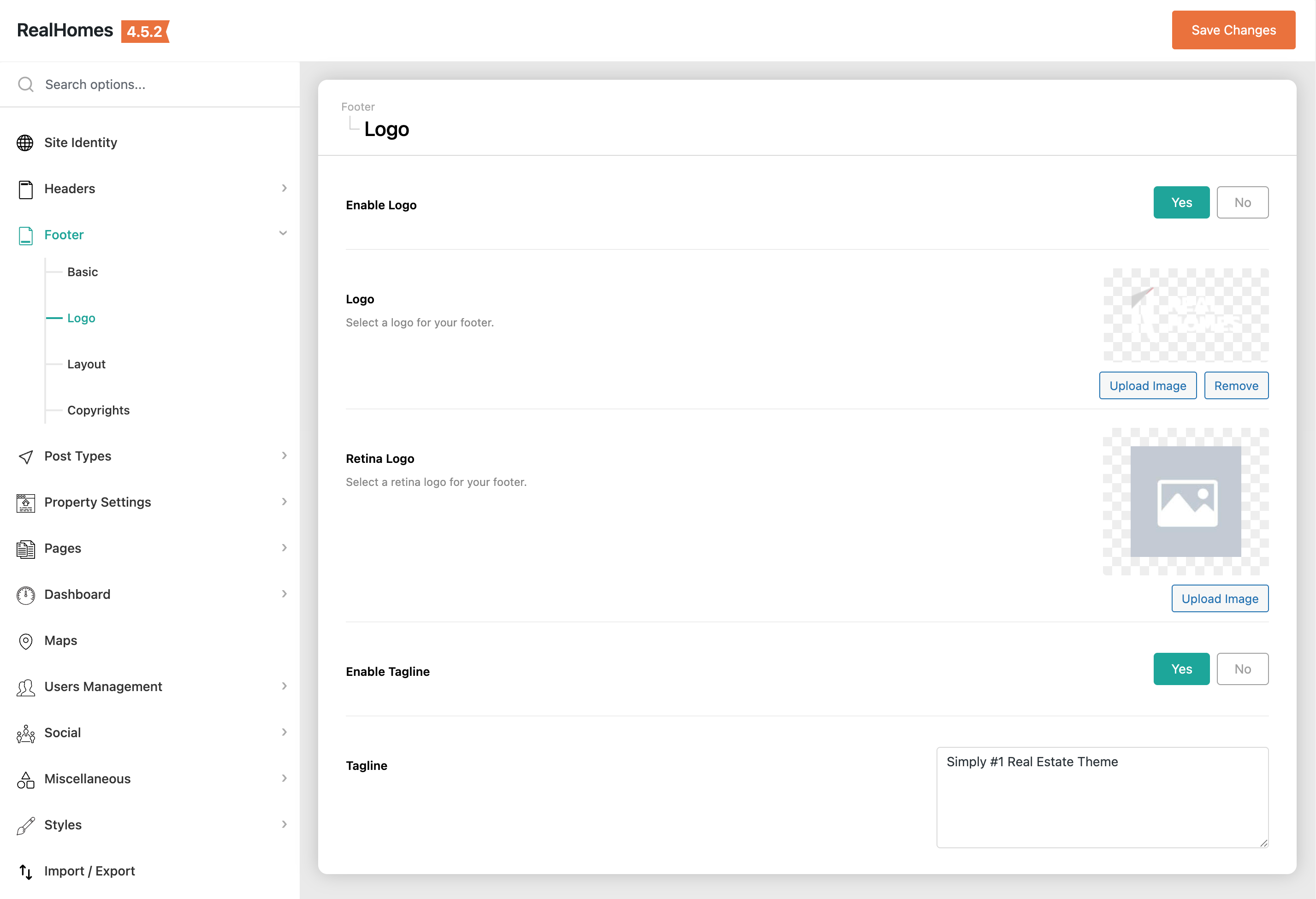 Dashboard ➤ RealHomes ➤ Settings ➤ Footer ➤ Logo