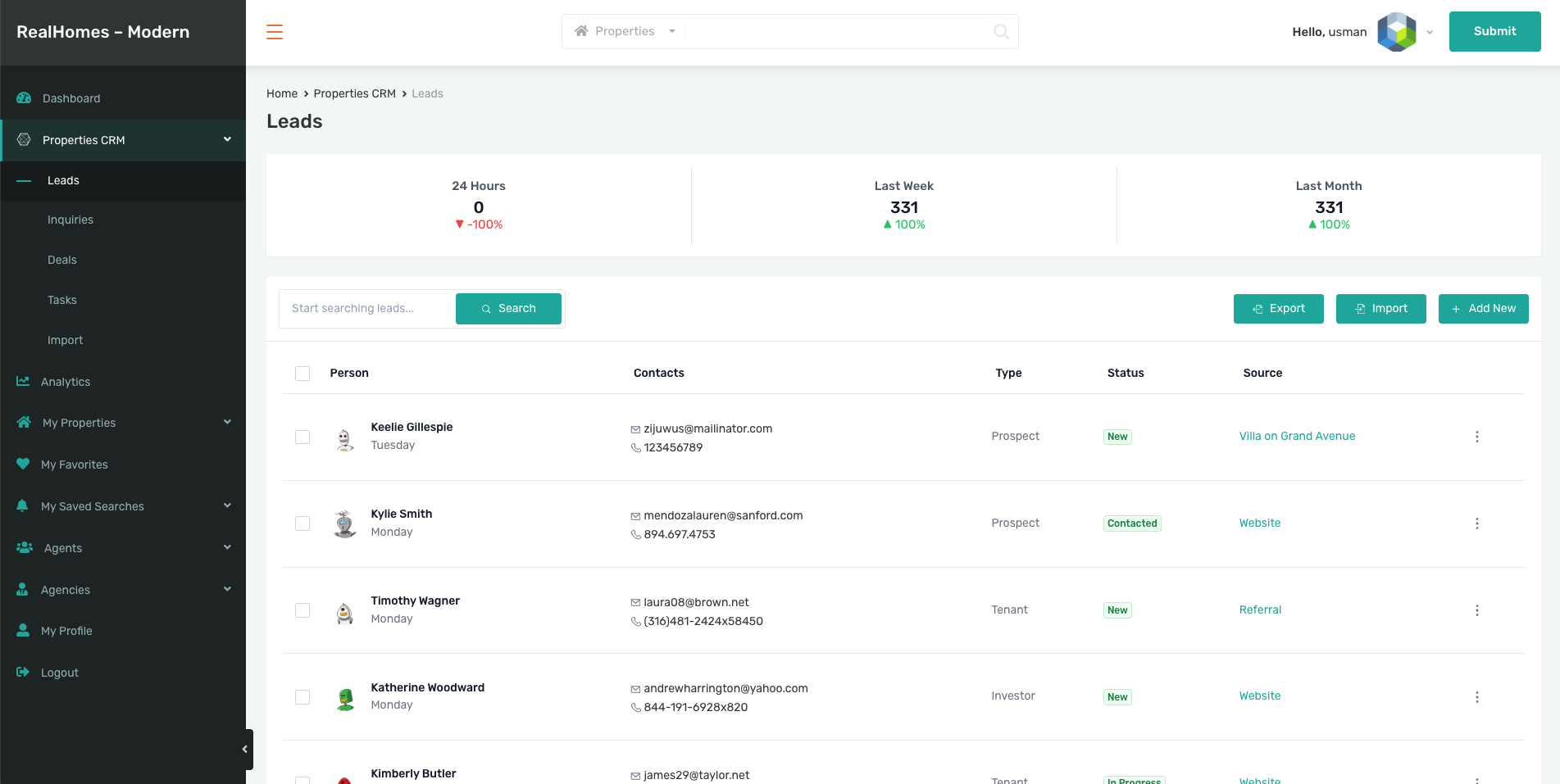 The RealHomes CRM plugin brings a complete powerful all-in-one Customer Relationship Management solution to your website, helping you manage leads, track inquiries, and streamline your real estate communication process directly from your RealHomes Dashboard.