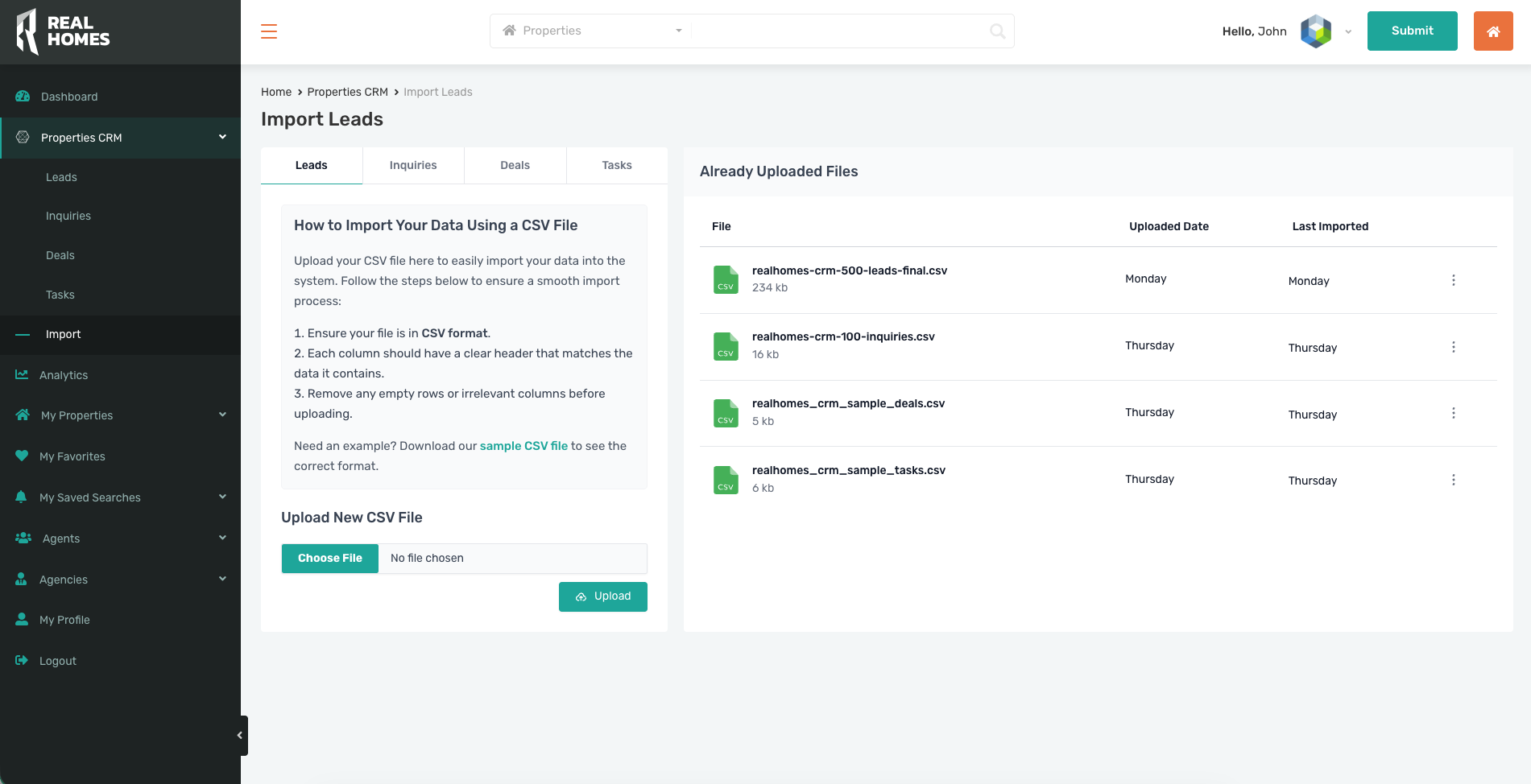 Navigate to Properties CRM β Import.