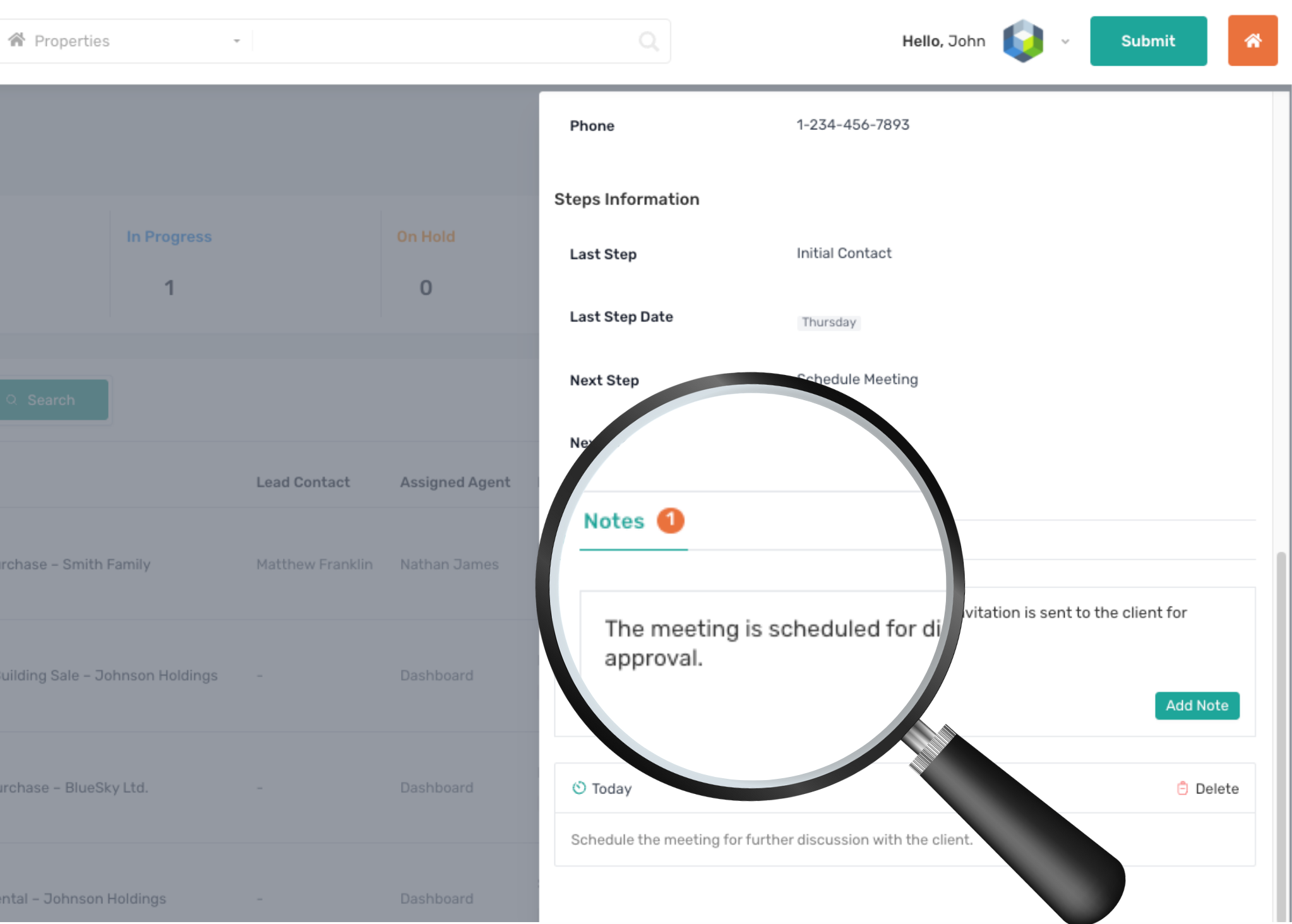 Open the Properties CRM section in your Frontend Dashboard to view your real-time CRM workspace.
