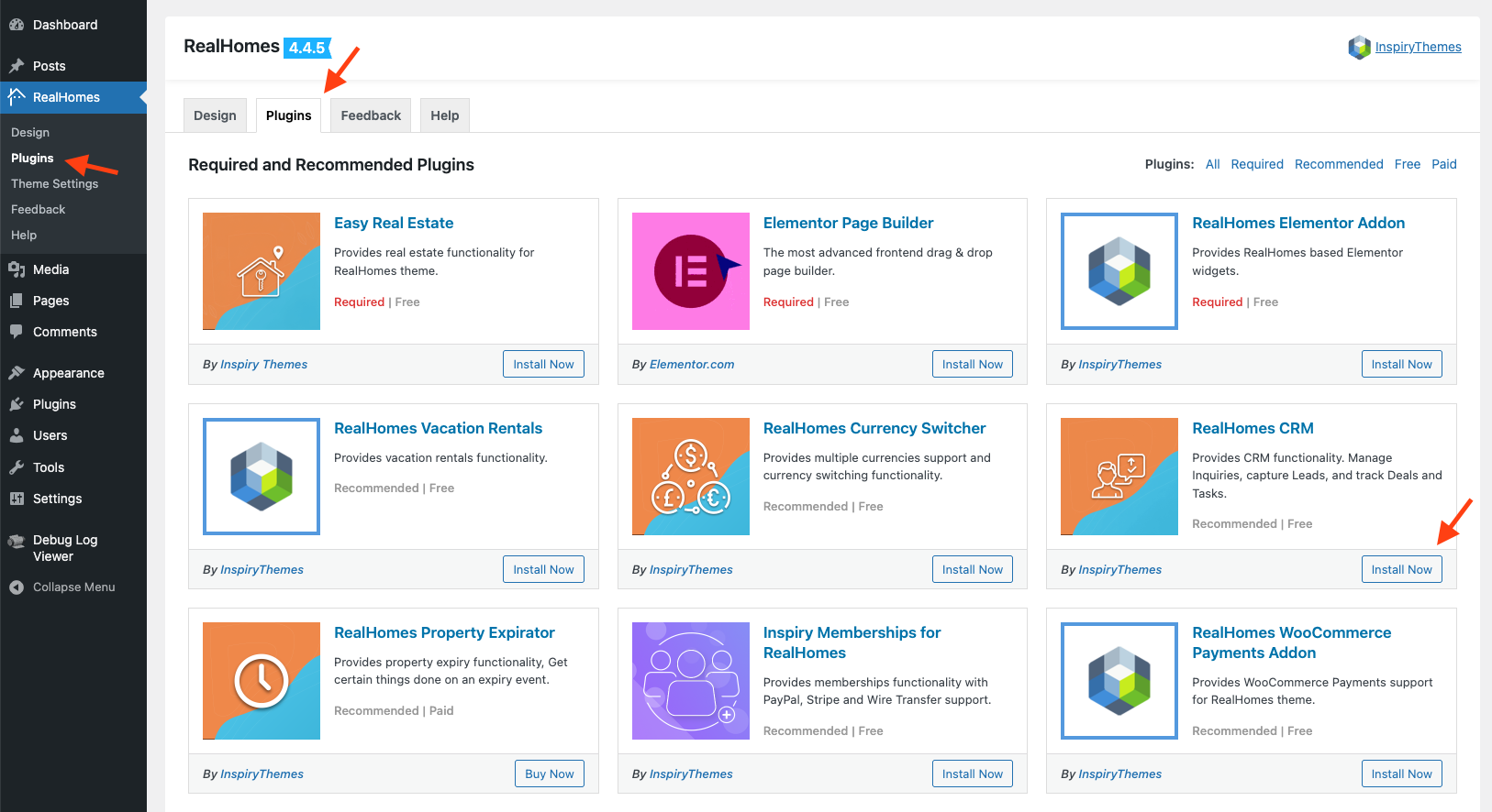 - Navigate to Dashboard → RealHomes → Plugins