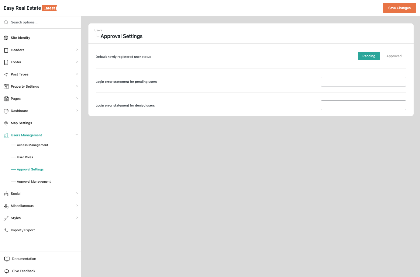 Dashboard → Easy Real Estate → Settings → Users → User Approval Management