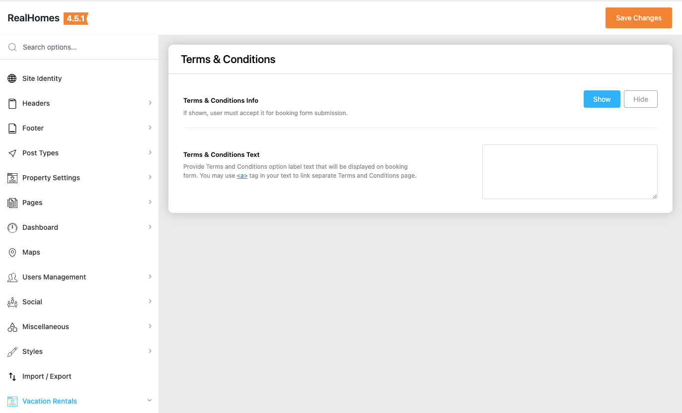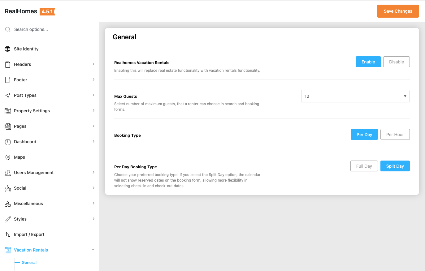 You can manage all settings for Vacation Rentals. Follow the navigation path based on your version: